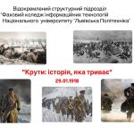 У коледжі з нагоди Дня пам’яті Героїв Крут було проведено виховну годину на тему «Крути: історія, яка триває». Захід мав на меті вшанування подвигу української молоді, котра у січні 1918 року стала на захист державності України, а також формування історичної пам’яті й національної свідомості здобувачів освіти.