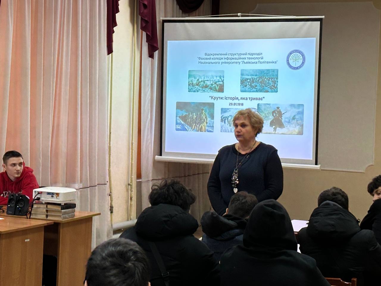 У коледжі з нагоди Дня пам’яті Героїв Крут було проведено виховну годину на тему «Крути: історія, яка триває». Захід мав на меті вшанування подвигу української молоді, котра у січні 1918 року стала на захист державності України, а також формування історичної пам’яті й національної свідомості здобувачів освіти.