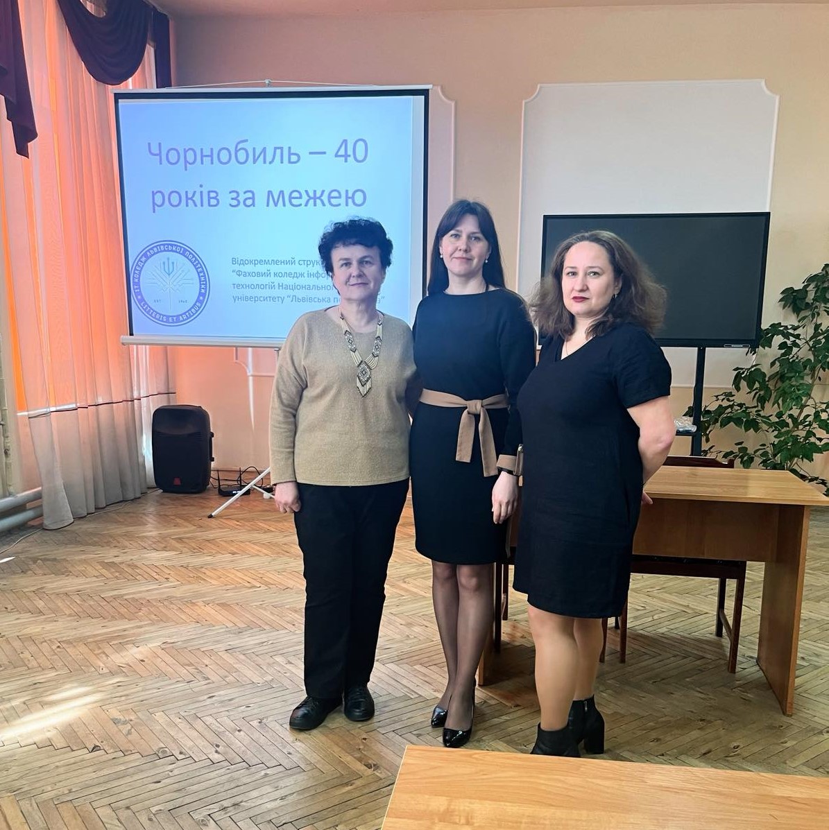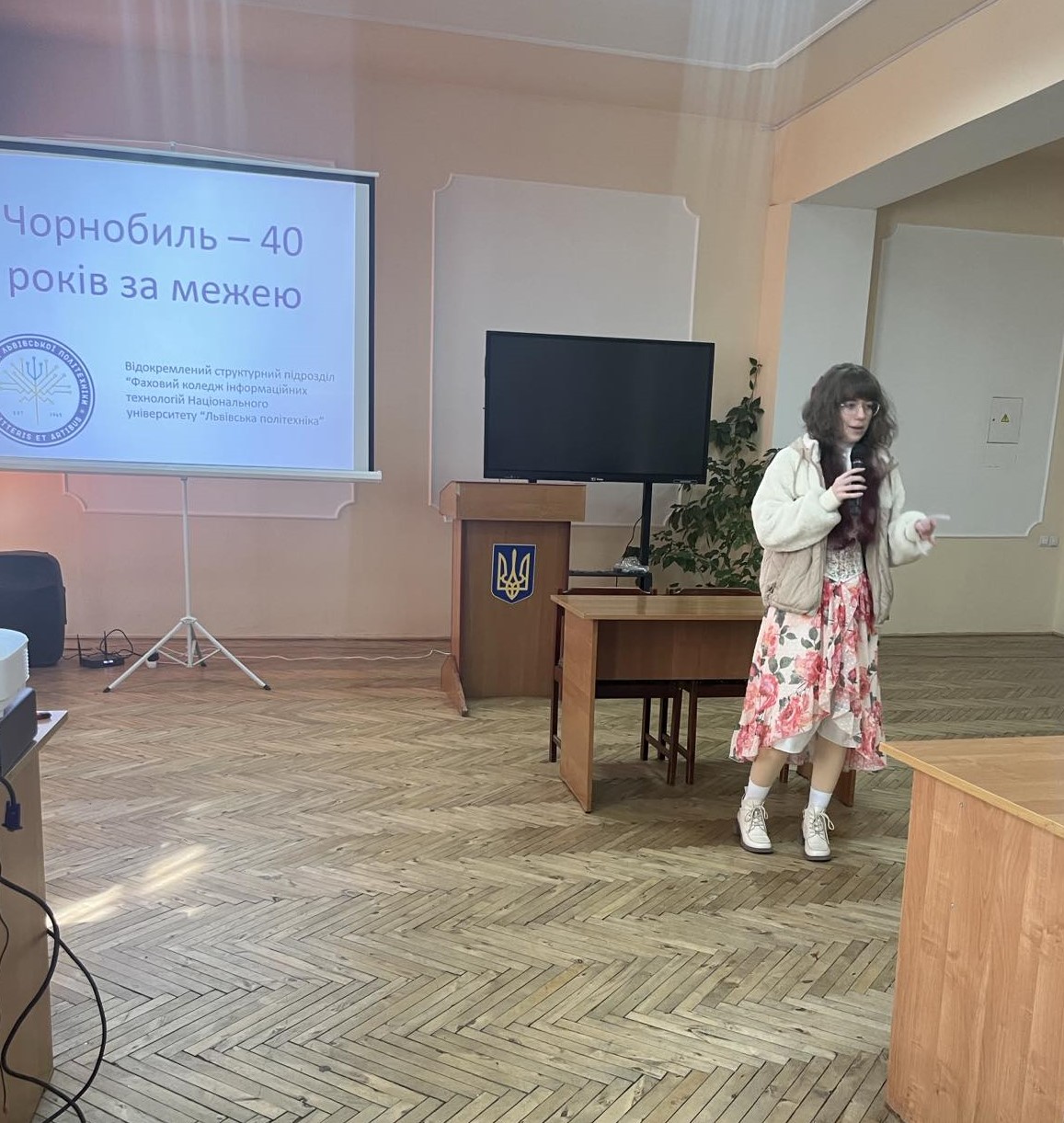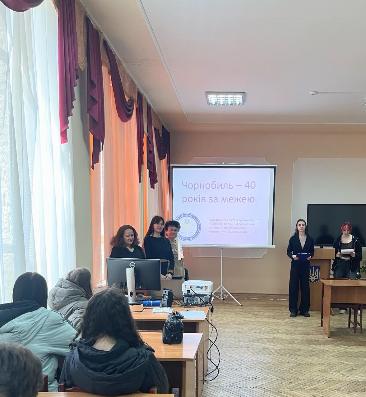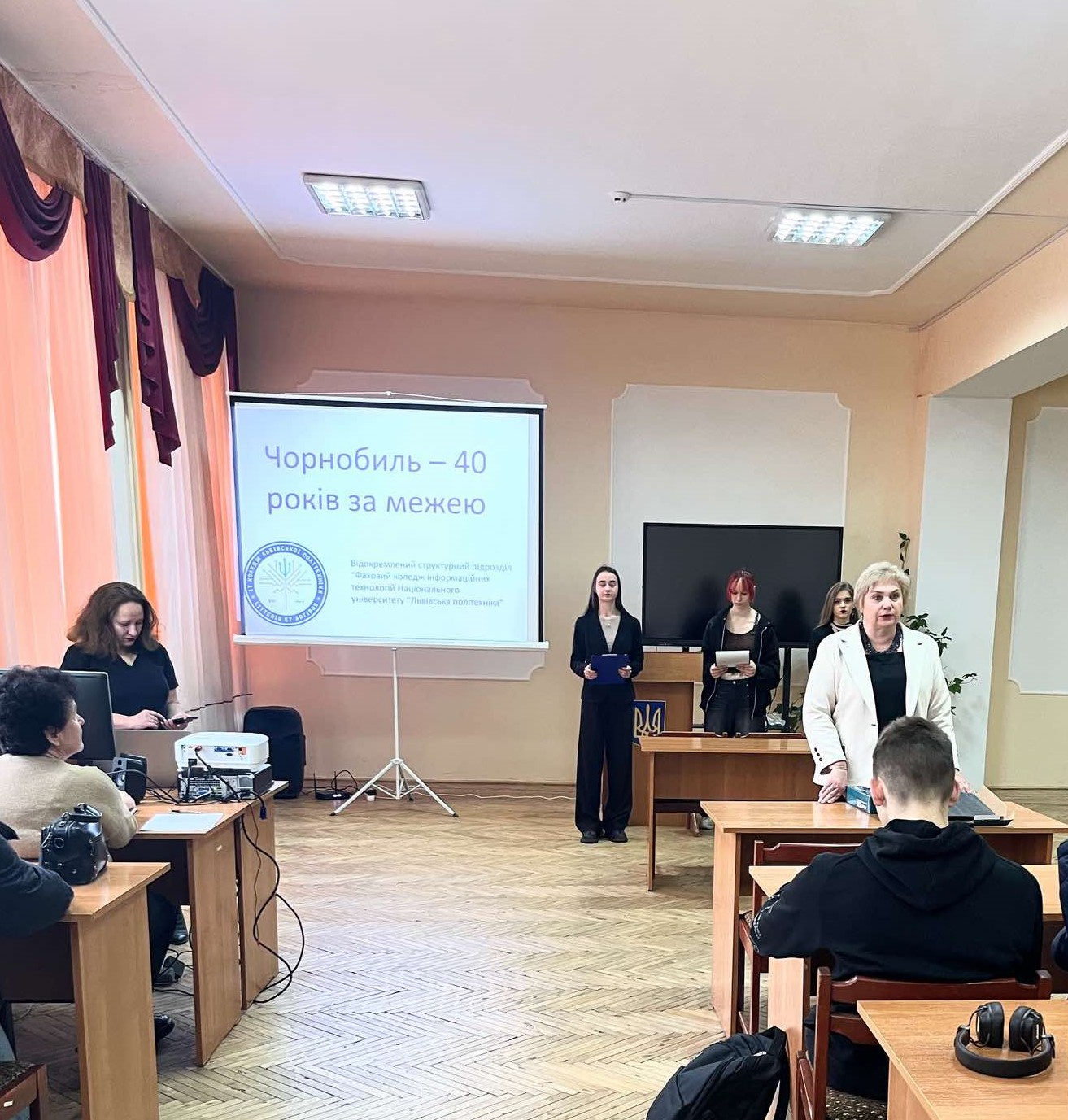 У Відокремленому структурному підрозділі «Фаховий коледж інформаційних технологій Національного університету “Львівська політехніка”» 24.04.2026 р. було проведено інформаційно-просвітницький захід «Чорнобиль – 40 років за межею», присвячений вшануванню пам’яті жертв Чорнобильської катастрофи та подвигу ліквідаторів. Метою заходу було формування в студентів історичної пам’яті, громадянської свідомості та усвідомлення масштабів трагедії, яка сколихнула весь світ.