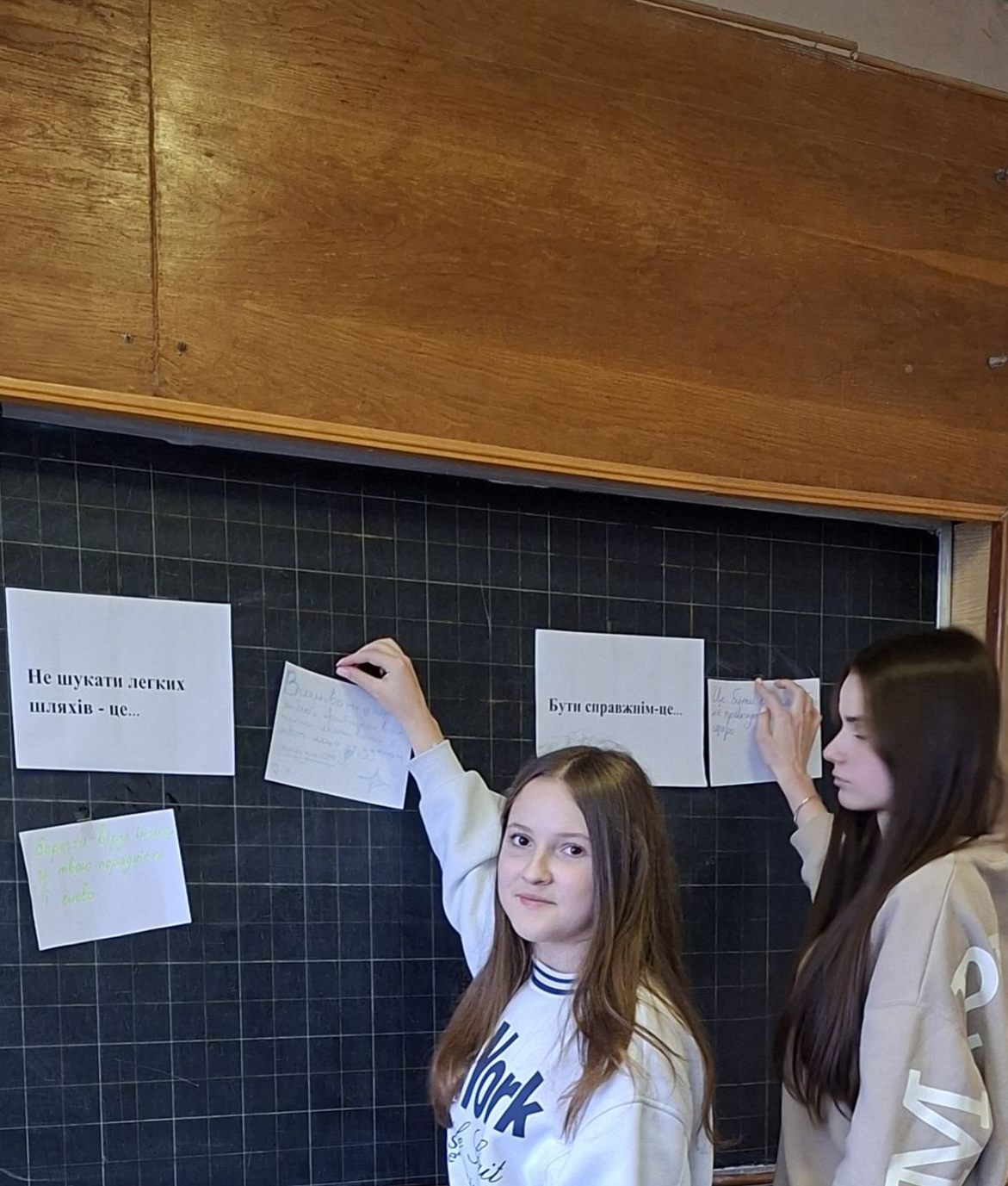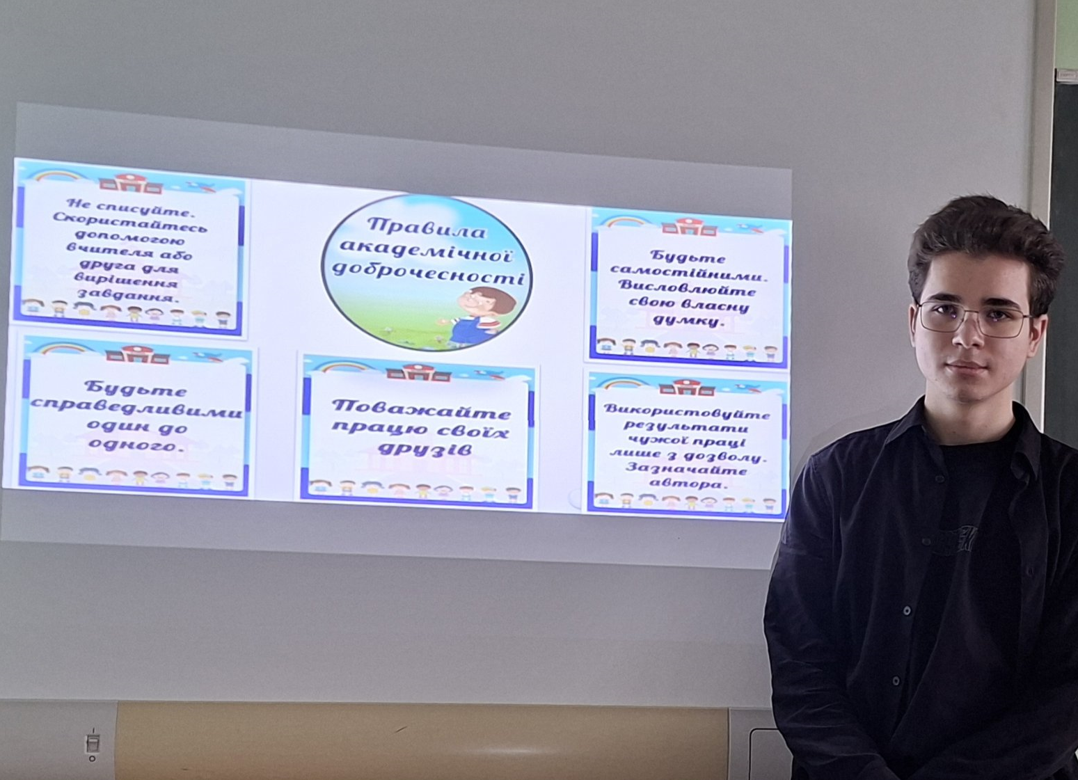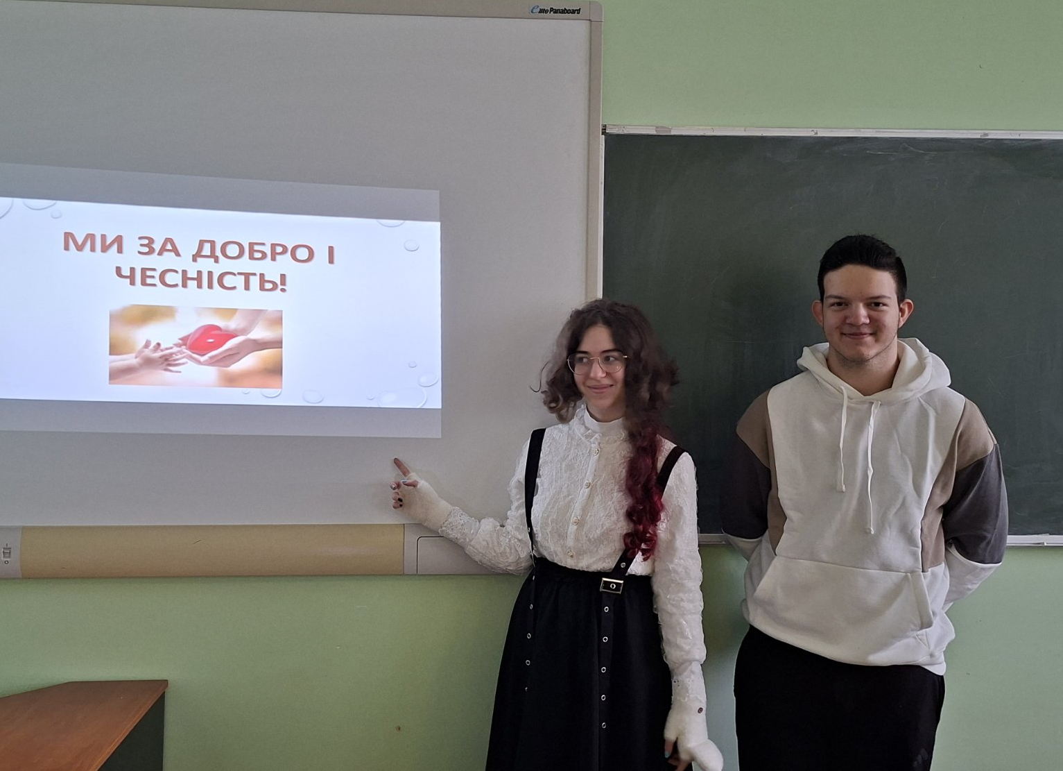 Під час обговорення студенти активно висловлювали власні думки, ділилися прикладами з повсякденного життя та спільно виконали інтерактивну вправу «Продовжи думку», яка допомогла глибше осмислити поняття доброчесності та справедливості.