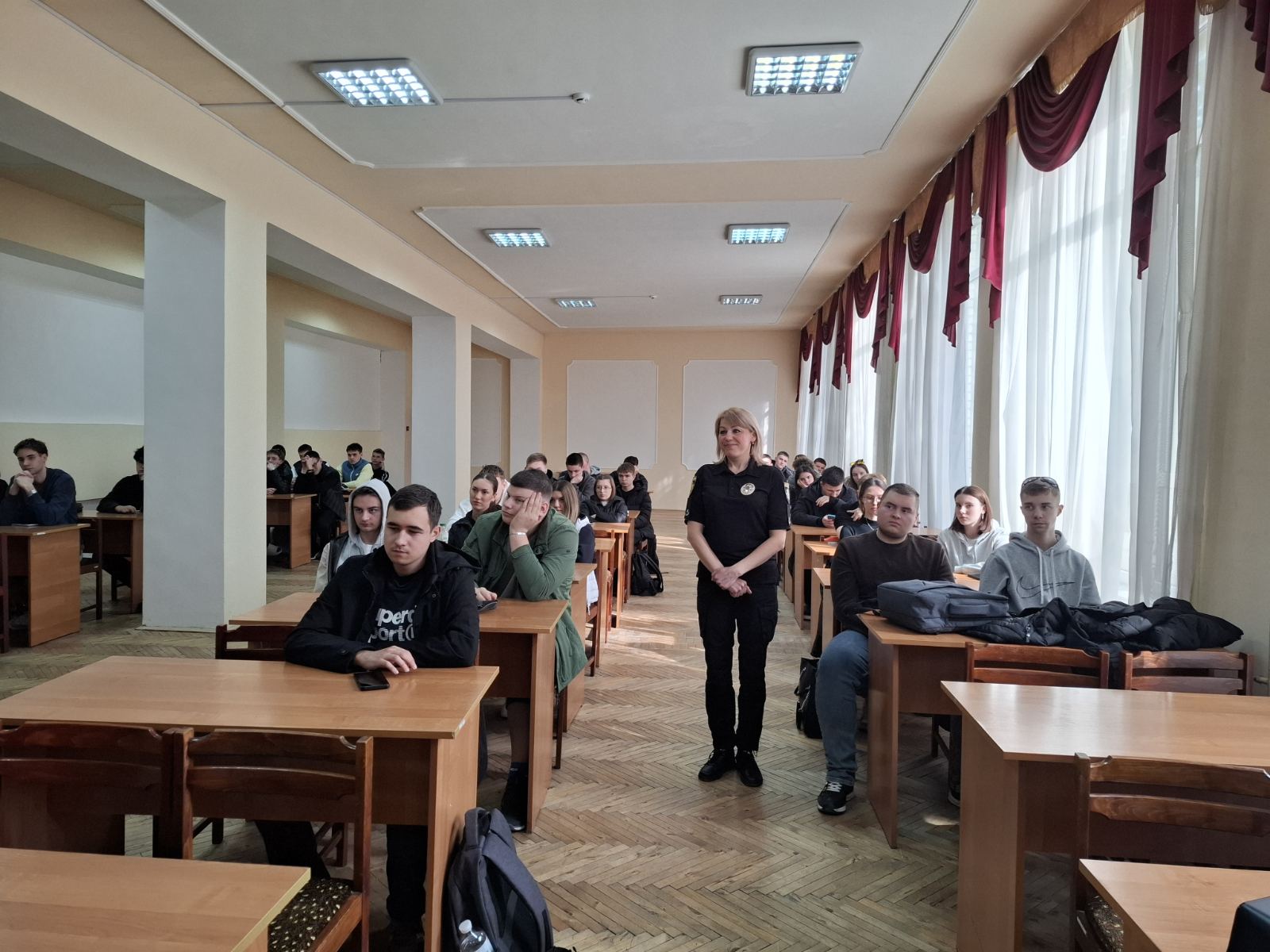 Під час зустрічі представник поліції розповіла про основні напрямки роботи правоохоронних органів, специфіку служби, умови вступу до закладів освіти системи МВС, а також про важливість фізичної підготовки, дисципліни та високих моральних якостей.