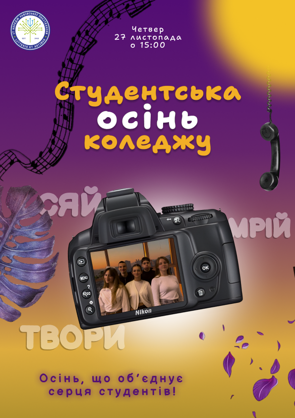 Студентська молодь коледжу запрошує вас поринути у світ творчості та таланту на нашому щорічному святі — “Студентська осінь коледжу”!