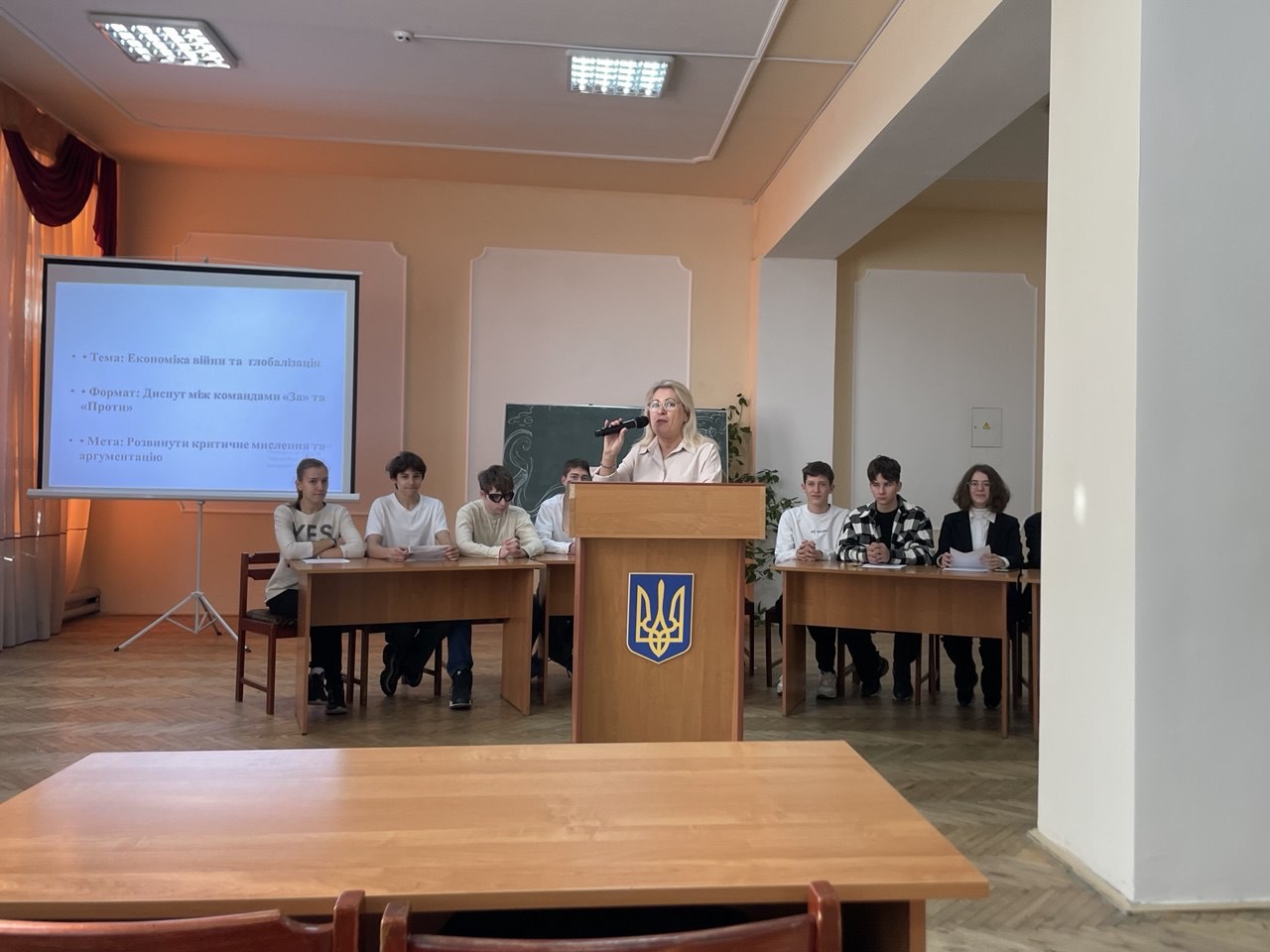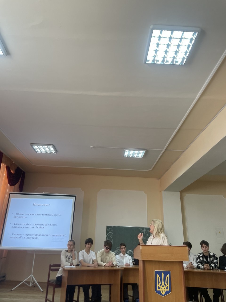 Під час заходу студенти активно досліджували вплив сучасних воєнних конфліктів на світову економіку, розглядали особливості глобалізаційних процесів та їхній вплив на Україну. Дискусія сприяла формуванню критичного мислення, розвитку навичок аргументованого висловлення власної думки та поглибленню економічної компетентності здобувачів освіти.
